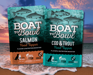 Boat to Bowl is a new and fresh approach to nourishing your pet's overall health and wellness. Our Fish-First Recipes include: Dry Kibble, Toppers, Wet Paté, and Omega 3 Fish Oil.